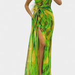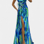 Aylin Vestido Maxi Asimétrico Estampado Colección Exclusiva
