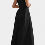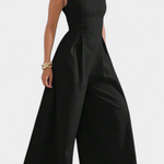 Minimalismo elegante para destacar con sencillez y estructura. El mono Blanca presenta una silueta limpia con cuello redondo, sin mangas y pernera ancha, realzada por pliegues que aportan fluidez y sofisticación. Su cierre trasero oculto completa un look moderno y versátil.