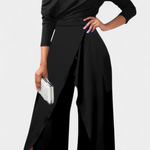 - Piernas anchas con abertura lateral para movimiento y estilo.