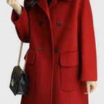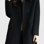 El Camille Abrigo de Lana Largo es un abrazo cálido en los días fríos, una prenda que evoca la elegancia de un romance invernal. Su doble botonadura clásica añade un toque de sofisticación, mientras que su silueta larga envuelve tu figura con un aire de misterio y encanto.