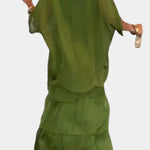 • La falda maxi con volantes añade volumen y movimiento elegante, ideal para un estilo desenfadado.