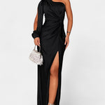 - Escote de un solo hombro que aporta un toque moderno y refinado.