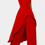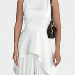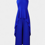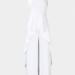 El conjunto Chrysoula es la esencia del minimalismo elegante, diseñado para quienes buscan una silueta que fluya con distinción. Este conjunto incluye un top sin mangas de cuello cerrado y un diseño asimétrico envolvente, complementado por pantalones plisados de caída ancha.