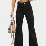 Con un corte de pierna ancha, estos pantalones ofrecen una libertad de movimiento que invita a danzar con gracia. La cintura alta resalta la figura, creando un silueta que enamora a primera vista.