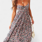 El Reyna Vestido Maxi Floral Espalda Abierta Exclusiva irradia frescura y movimiento con cada paso. Su estampado floral romántico se combina con una silueta suelta de caída fluida, ideal para días soleados y veladas relajadas.