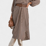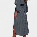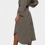 Eliana Vestido Rayado Exclusiva Cinturón Cuello de Muesca