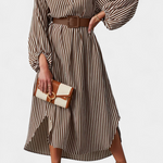 El Eliana Vestido Rayado Exclusiva Cinturón Cuello de Muesca es una propuesta moderna que combina funcionalidad y estilo refinado. Con un patrón de rayas verticales, estiliza la silueta y aporta un toque contemporáneo.