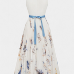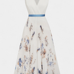 El vestido Elise combina romanticismo clásico con una frescura moderna. Confeccionado en chiffon blanco con estampado floral, presenta un escote en V favorecedor, silueta A-line y delicados pliegues que aportan textura y fluidez.