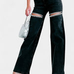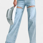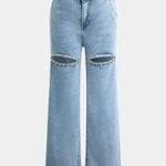 Evelyn Jeans Rectos Rasgados Con Rhinestones Colección