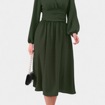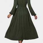 Descubre el Faela Vestido Midi Oficina Lunares Suizos Exclusiva, una propuesta vintage-chic ideal para el entorno profesional. Este vestido combina un delicado patrón de lunares suizos con un corte midi estructurado, transmitiendo una elegancia atemporal.