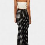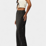 La falda larga entallada Olda de viscosa con estampado de lunares es la elección perfecta para quienes buscan un estilo sofisticado y sin esfuerzo. Su diseño combina feminidad refinada con un movimiento natural, ideal para cualquier ocasión.