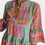 Gina Vestido Boho Bordado Con Escote En V Mangas Limitadas
