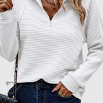 En un mundo donde la elegancia se encuentra con la comodidad, el Jersey Helene se erige como un símbolo de romance y sofisticación. Su cuello en V con cremallera no solo ofrece un ajuste personalizado, sino que también evoca un aire contemporáneo que enamora a primera vista.