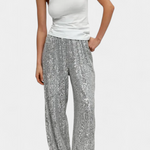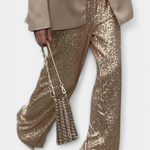 Descubre la elegancia de los Lara Pantalones de Lentejuelas Cintura Alta Suelto Exclusivo. Cada destello de lentejuelas añade un toque mágico a tu look, realzando tu belleza en cada paso. Su diseño holgado y cintura alta se adapta perfectamente a tu figura, brindándote comodidad y sofisticación.