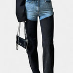 Mila Jeans Patchwork Denim Tiro Alto Corte Recto Exclusivo