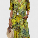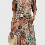 Su silueta A-line fluye con naturalidad, favoreciendo a diferentes tipos de cuerpo sin ajustar. Además, la combinación de estampado floral y animal print le otorga un aire bohemio, ideal para días despreocupados.