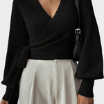 Descubre el suéter Persephone, una pieza distintiva que combina sencillez y carácter moderno. Su diseño de tirantes cruzados aporta un aire único al clásico suéter, mientras que el cuello en V favorece la silueta con sutileza.