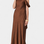 Robina Vestido Largo Asimétrico Bronce Colección Exclusiva