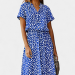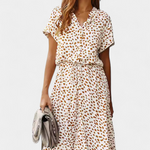 Ligero, juguetón y sin esfuerzo, el vestido Rovena reinventa el clásico camisero con un aire relajado y veraniego. Su estampado de lunares y su silueta fluida lo hacen ideal para cualquier ocasión.