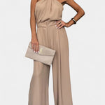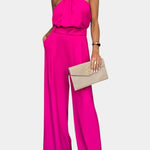 Con un escote halter que enmarca los hombros con un toque moderno, este conjunto resalta la figura de manera sofisticada. La silueta fluida cae maravillosamente, ofreciendo un look refinado.