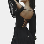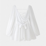 • Mangas largas semitransparentes con aberturas delicadas para un aire sutil.