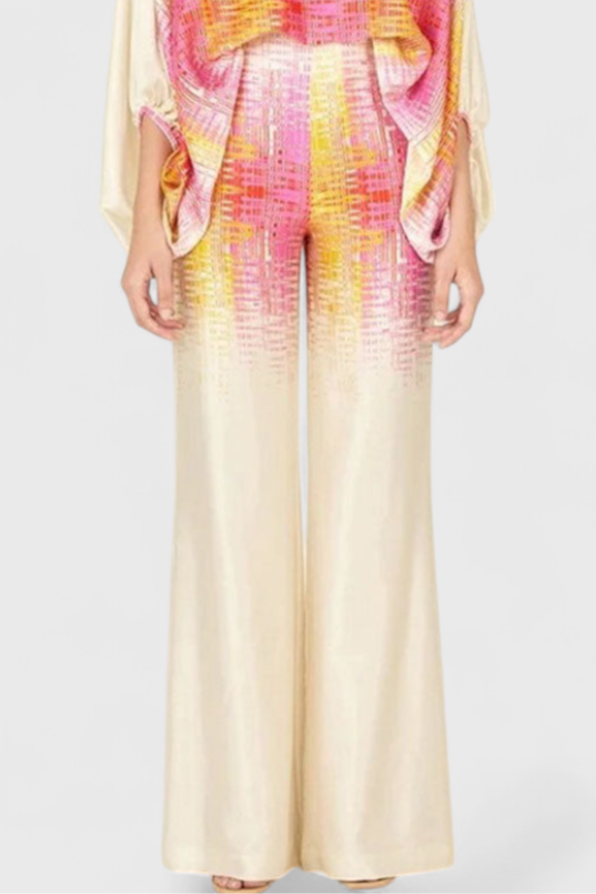 Descubre el conjunto Sybella, una fusión perfecta de estilo relajado y un toque romántico. Este conjunto de dos piezas incluye una blusa con hombros descubiertos y mangas de farol, combinada con pantalones de pierna ancha y un estampado artístico que resalta tu personalidad.