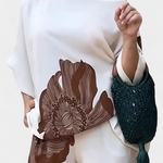 - El top presenta un hombro caído y mangas amplias, aportando un aire relajado.