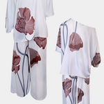 Descubre el conjunto floral Jessie, una fusión perfecta de frescura y estilo desenfadado. Este conjunto exclusivo de Sybella combina un top asimétrico de manga murciélago con un vibrante estampado floral, ideal para quienes buscan un look bohemio y lleno de energía.