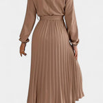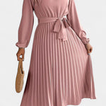 - La cintura plisada con cinturón suave realza la figura con precisión.