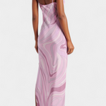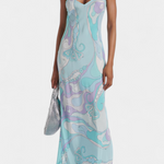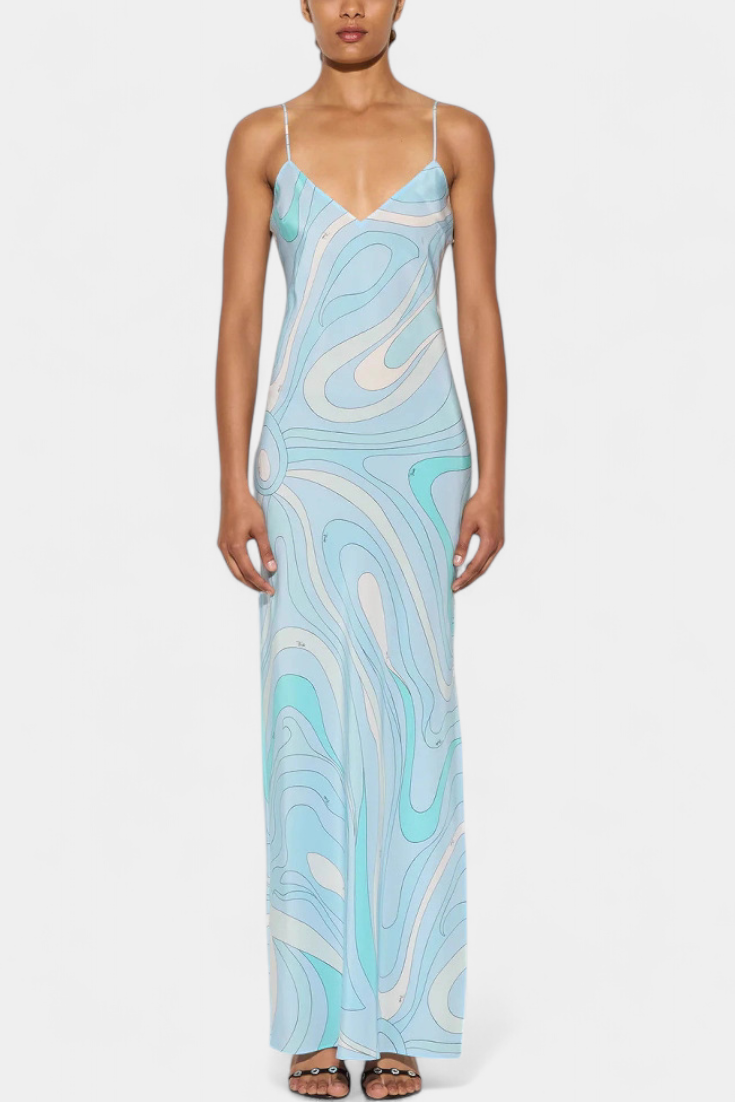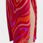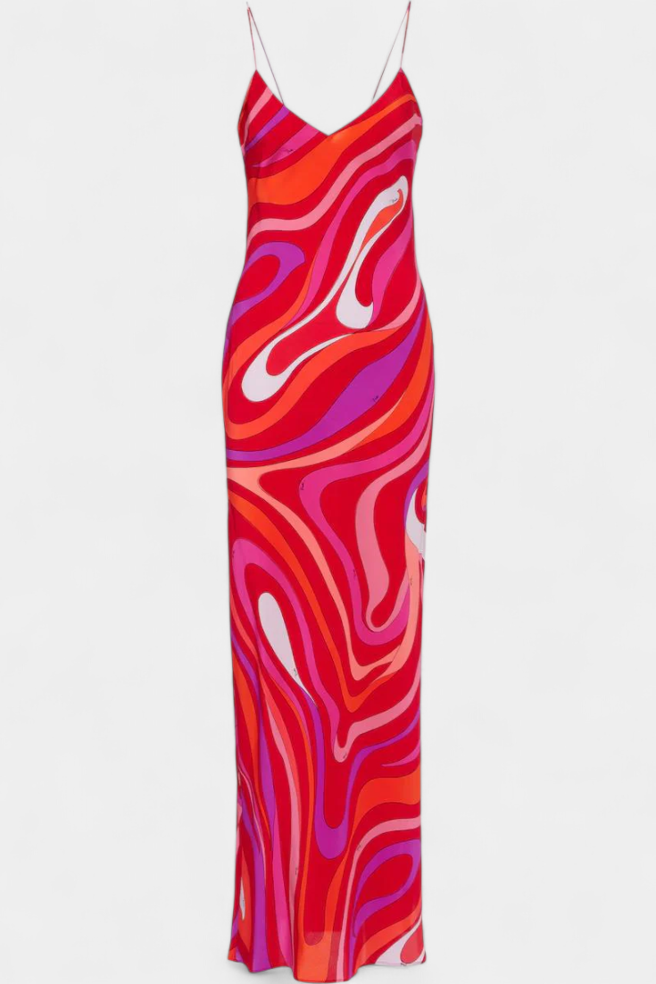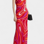 El vestido Valera es una pieza audaz que irradia movimiento y energía. Con un estampado de remolino retro-psicodélico en tonos vibrantes, fusiona estilo artístico con una silueta fluida y femenina.