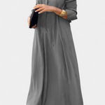 Fluido, cómodo y elegantemente sin esfuerzo: el vestido Verónica es tu opción ideal para un estilo versátil a lo largo de las estaciones. Con un escote en V favorecedor, mangas largas y un corte relajado, esta silueta de largo completo aporta comodidad y elegancia tanto a los momentos cotidianos como a las ocasiones festivas.