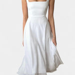Deslízate con elegancia sin esfuerzo con el Vestido Mary, una silueta A-line sin mangas atemporal diseñada con una forma favorecedora de ajuste y vuelo. Con un escote cuadrado, tirantes anchos y una falda midi suavemente acampanada, es perfecto para todo, desde brunchs informales hasta celebraciones al sol.