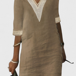 • Escote en V femenino y mangas 3/4 relajadas para una elegancia fresca.