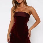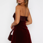 El Ariana Vestido Mini de Terciopelo Edición Limitada es una pieza audaz pero refinada diseñada para destacar en cualquier ocasión. Este vestido mini sin tirantes presenta un escote bandeau estructurado que realza la figura, complementado con un elegante dobladillo de satén martillado.