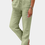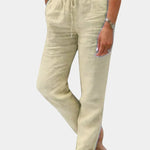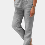 Los Pantalones Viona de lino mezclado son un susurro de elegancia en climas cálidos. Su corte relajado abraza suavemente tus curvas, mientras que la textura suave acaricia tu piel, brindando una sensación de libertad y ligereza.