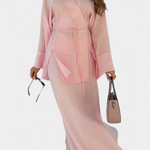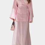 El conjunto Zelda reinterpreta los conjuntos veraniegos con elegancia relajada. Compuesto por una camisa de escote en V y una falda con abertura, esta propuesta fresca equilibra sencillez y estilo, ideal para días soleados que invitan a moverse con libertad y ligereza.