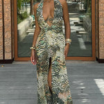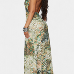 Descubre el Zephyra Vestido Maxi Halter de Encaje, una pieza que despierta magnetismo. Este vestido combina la delicadeza del encaje con un escote halter profundo, creando una silueta fluida que se abre en una dramática abertura lateral.
